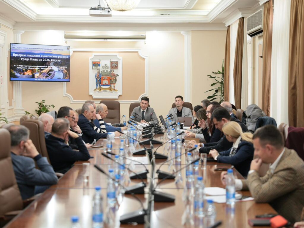 Централна тема седнице био је Нацрт Програма локалног економског развоја Града Ниша за 2026. годину – кључни документ који дефинише мере подршке привреди, развој (MMSP) сектора, привлачење инвестиција и даљи економски развој града.